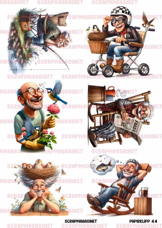 Papirklipp 44 - Gamle gubbers gode liv A4 A4 ark med store gøyale motiv som vist. 250gr. På lager Legg i handlekurv Lagerbalanse: 147 Del Informasjon A4 ark med store gøyale motiv som vist. 250gr.
